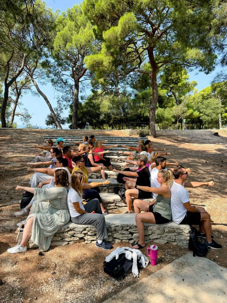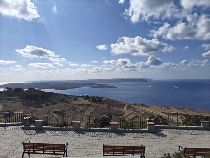 Perjantaina lähdimme koko kurssiporukan kanssa yhdessä syömään läheiseen ravintolaan ja otimme vielä yhteiskuvan ennen kuin ryhmämme hajaantui omiin illanviettoihinsa. Itse kävin perjantaina tutustumassa Maltan arkeologiseen museoon, joka toimikin hyvänä alustuksena lauantain Gozon retkelle. Kurssin hintaan kuului nimittäin vielä lauantaille lauttaliput Gozon saarelle, jossa vietin koko päivän ajellen pitkin saarta Hop-on-Hop-off bussilla, tutustuin muinaisen temppelirakennuksen raunioihin, pölähdin keskelle auto-onnettomuutta ja maltalaisia hautajaisia ja turisin italialaisten turistien kanssa omalla hyvin kökköisellä pelkän Duolingon avulla opitulla italiallani.