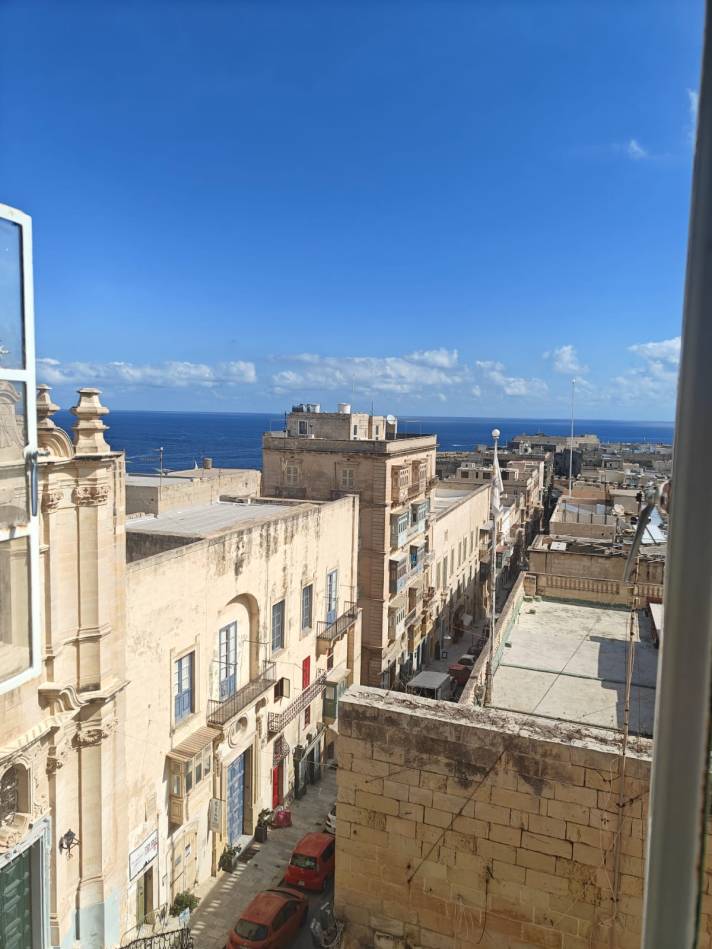 Aamupalan jälkeen suuntasin kohti Teachers Academyn Vallettan toimitiloja, jonne oli vain puolen kilometrin kävelymatka läpi Vallettan vanhan kaupungin. Kurssipaikka löytyi helposti, kurssitilat olivat nekin vanhassa palatsissa, hissittömän rakennuksen ylimmässä kerroksessa, josta sieltäkin ikkunoista avautui huikeat näkymä turkoosinsiniselle Välimerelle.