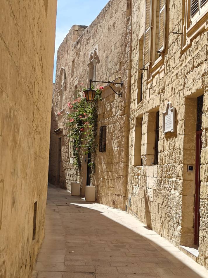 Keskiviikon päätteeksi lähdimme yhteiskuljetuksella Mdinan kaupunkiin. Mdina on Maltan entinen pääkaupunki ja yksi maailman parhaiten säilyneistä keskiaikaisista kaupungeista. Mdinan kalkkikiviset rakennukset ja kapeat kujat olivat tunnelmallisia ja ihanan rauhallisia, kunhan malttoi kuljeskella vähän kauemmas pääkadulta. Mdinan lähellä oli myös vanhoja katakombeja, jonne meille oli tarjottuna ilmainen sisäänpääsy. Tämä ei ehkä ahtaanpaikankammoiselle ollut ihan paras mahdollinen tutustumiskohde, ahtauden ja ihmismäärän lisäksi luolissa oli hillittömän kuumaa ja kosteaa.