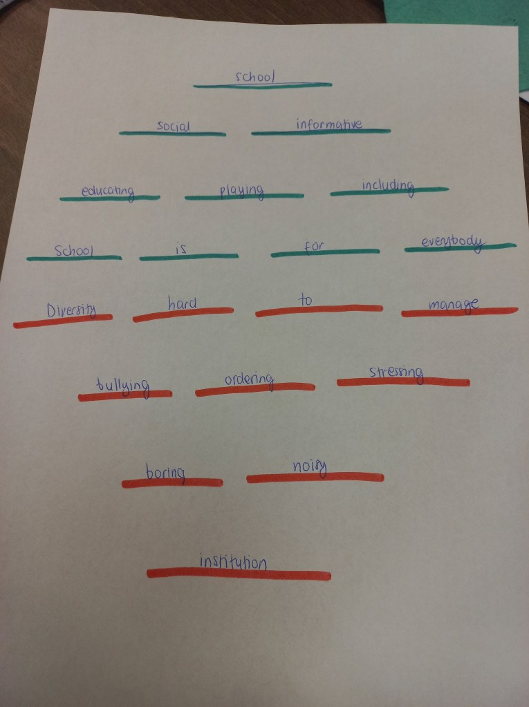 Päivä jatkui yksilötunneilla, joilla opettaja työskenteli pienryhmässä yhden oppilaan kanssa kerrallaan, mutta muut neljä olivat todistajina oppilaan kokemukselle ja prosessille. Joskus opettaja saattoi myös pyytää jonkun oppilaan avuksi. Opimme koko ajan myös opettamisesta seuratessamme opettajan tekemistä.
